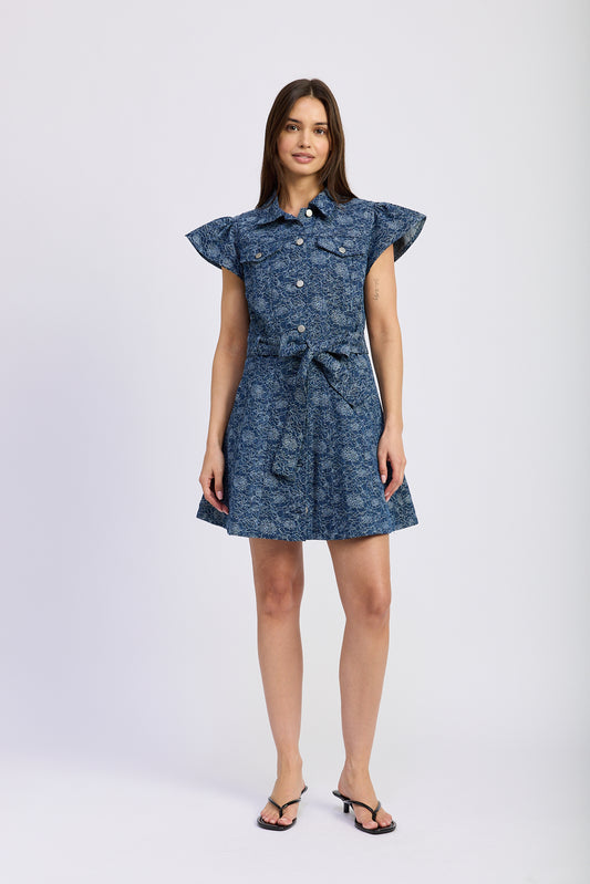 DENIM INDIGO TIE WAIST MINI DRESSPrecio habitual $125.00 USDPrecio habitualPrecio unitario por-