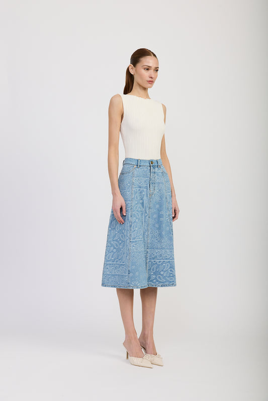 LIGHT DENIM TARAK MIDI SKIRTPrecio habitual $96.00 USDPrecio habitualPrecio unitario por-
