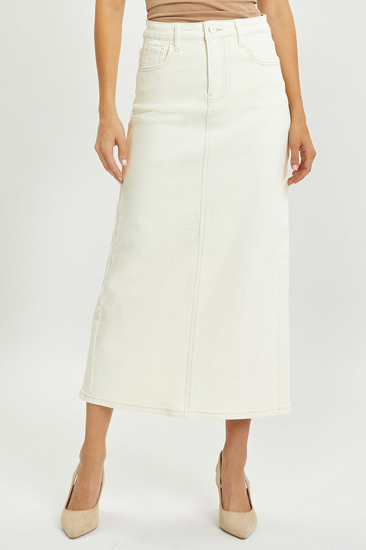 DOUBLE WAIST MIDI DENIM SKIRTPrecio habitual $98.00 USDPrecio habitualPrecio unitario por-