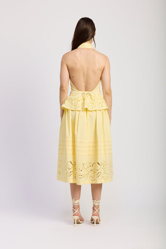 • NAVY TASSEL TIE FRONT MIDI DRESS