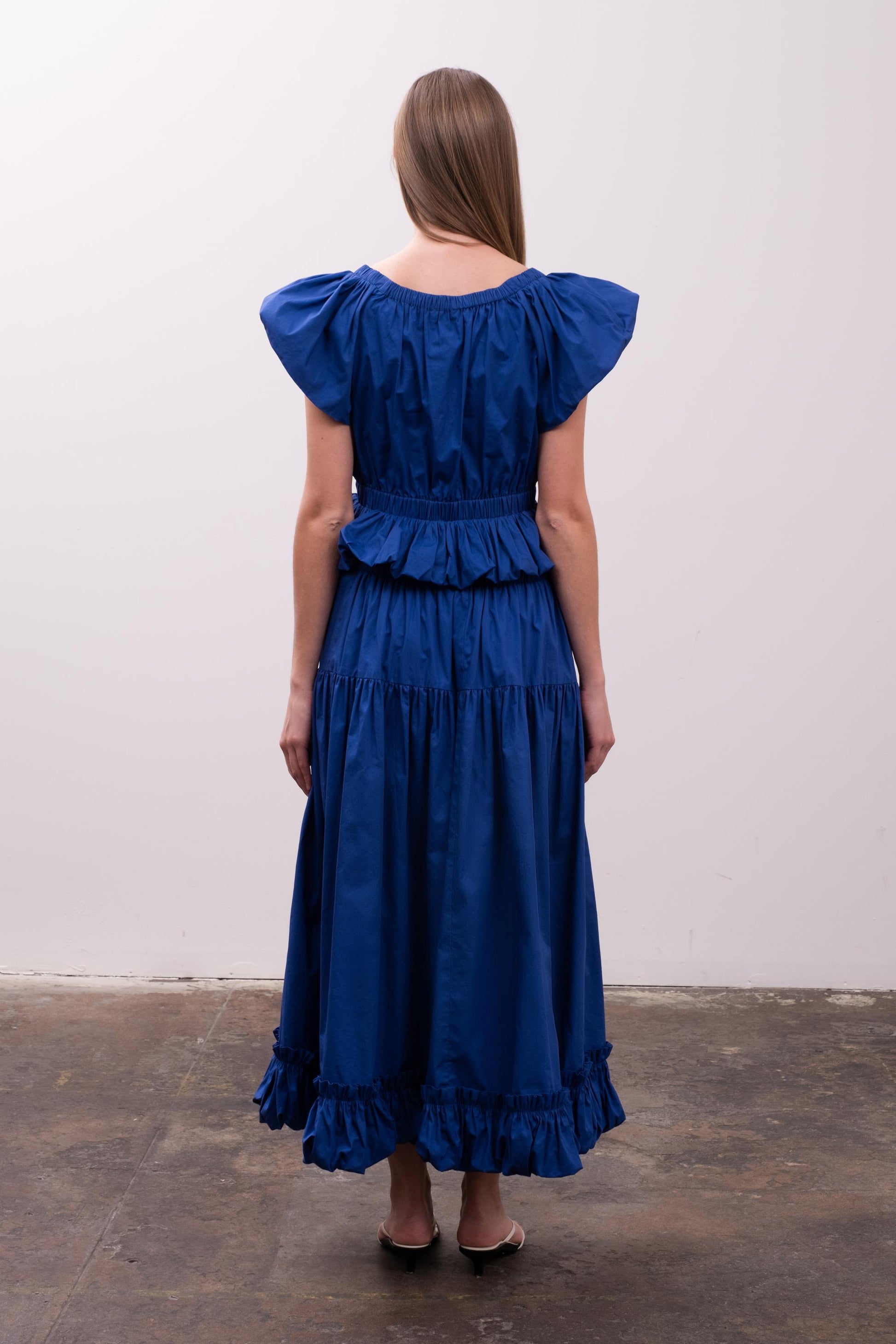 Top de mezclilla azul oscuro, corto en mezclilla rígida con escote cuadrado y tirantes anchos. Diseño estructurado de silueta recta, ideal para combinar con prendas de tiro alto.