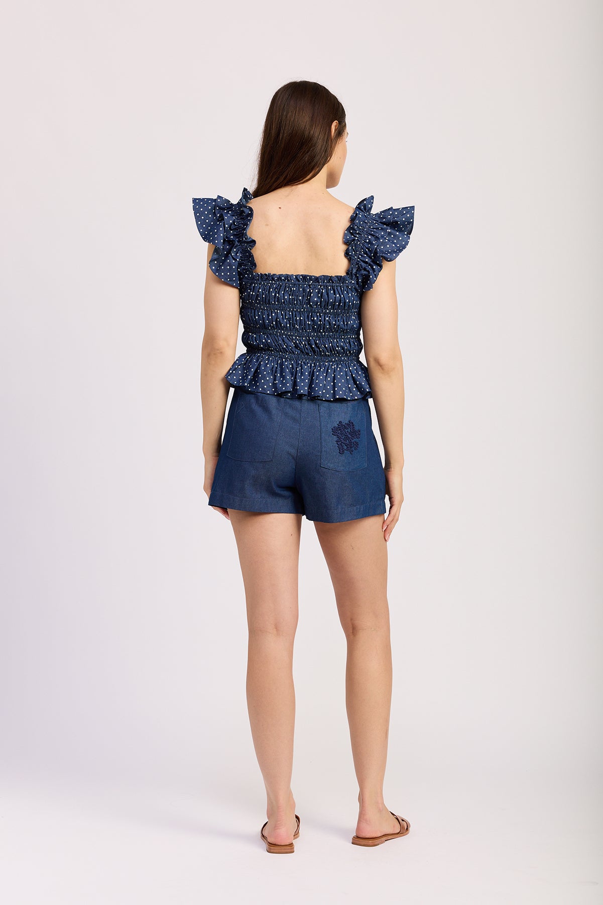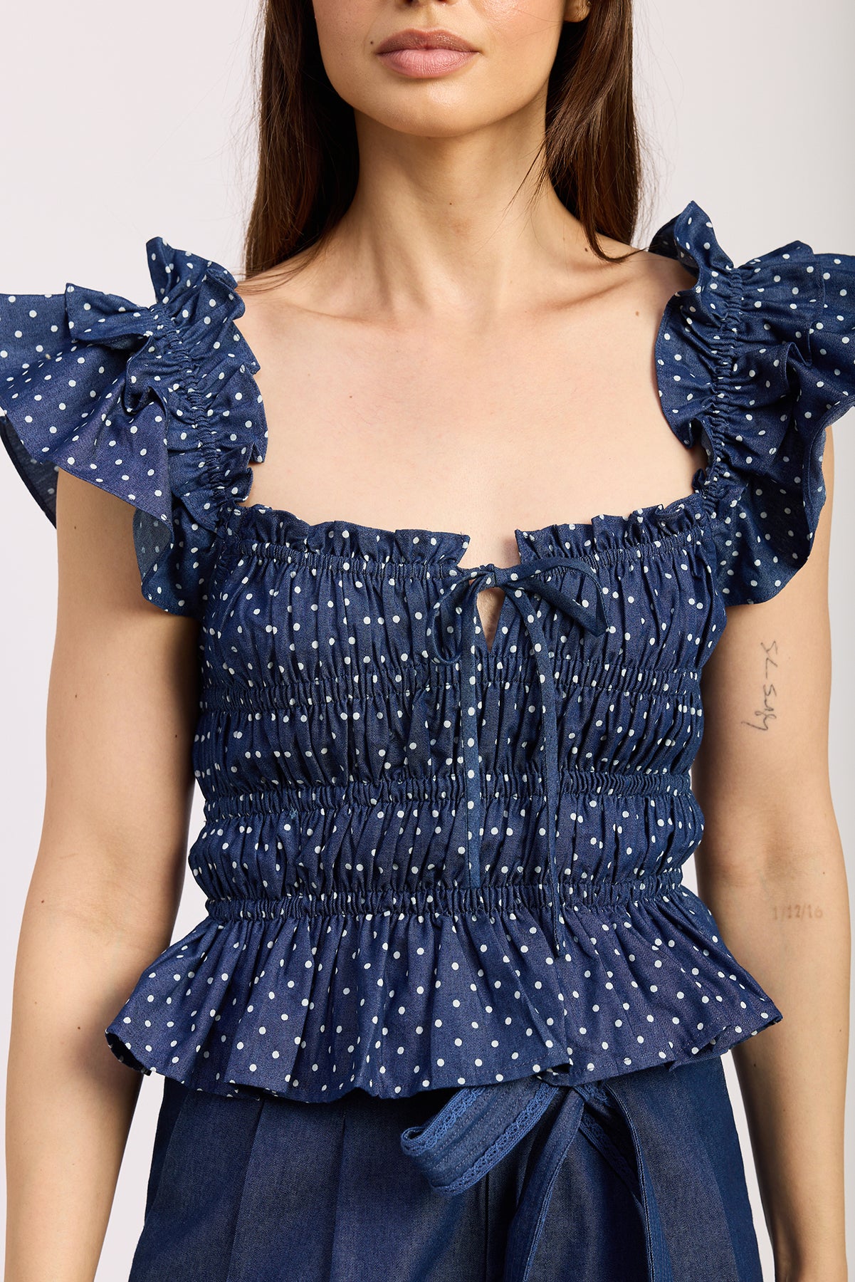 NAVY PEPLUM TOP