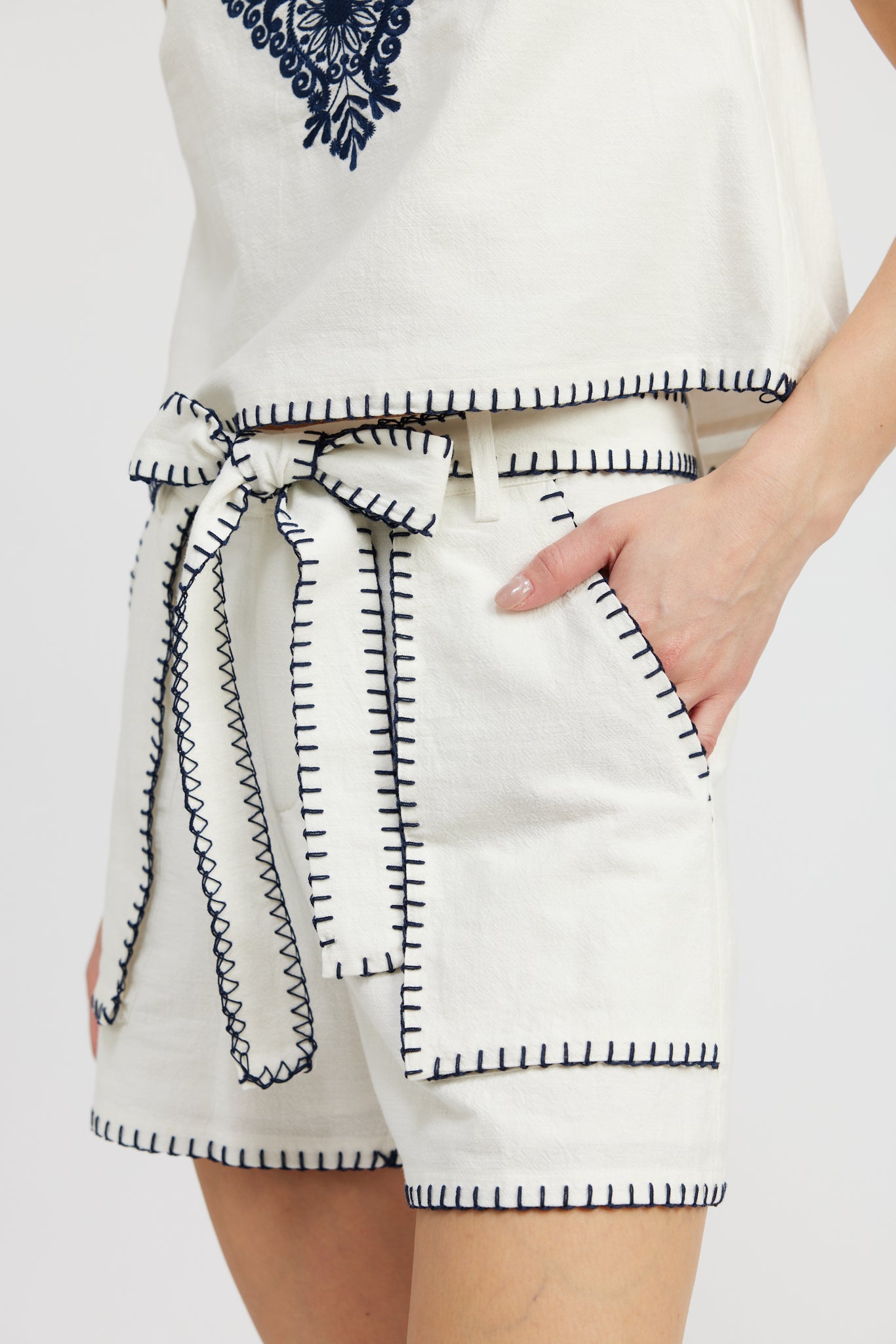 PANTALONES CORTOS DE LINO BLANCO CON LAZO